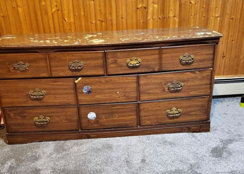 I bought it with great intentions, however it sat in my garage until the day I found out a dear friend was starting all over… with no furniture, no place to live, it wasn’t long before she found a sweet apartment but still no furniture! The light came on in my head and I dug out the old dresser! The rest is history, she lives her dresser and all the furniture she received from friends and family!