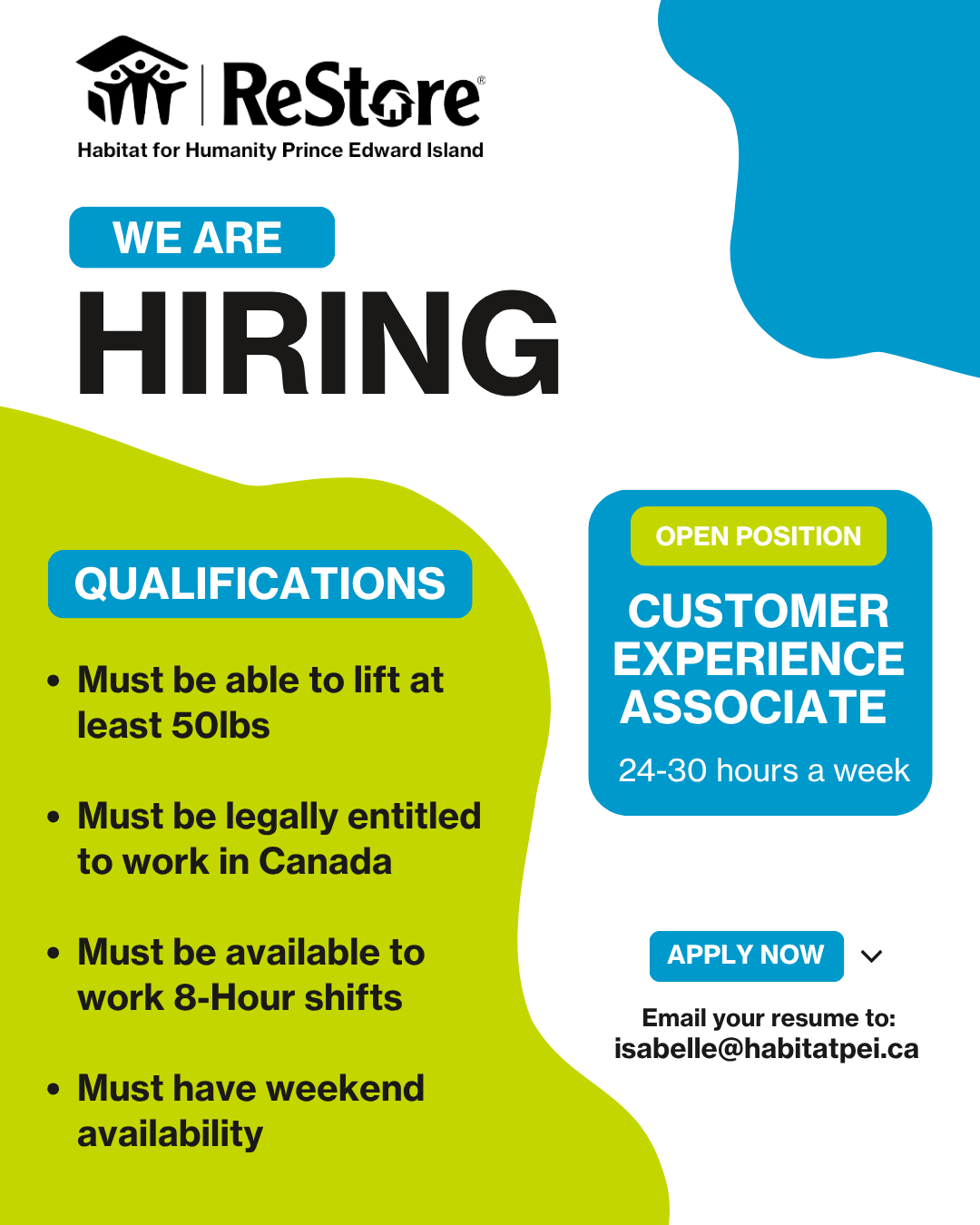 ReStore PEI is hiring! Join our team as a Customer Experience Associate. This is a part-time/permanent position with ...